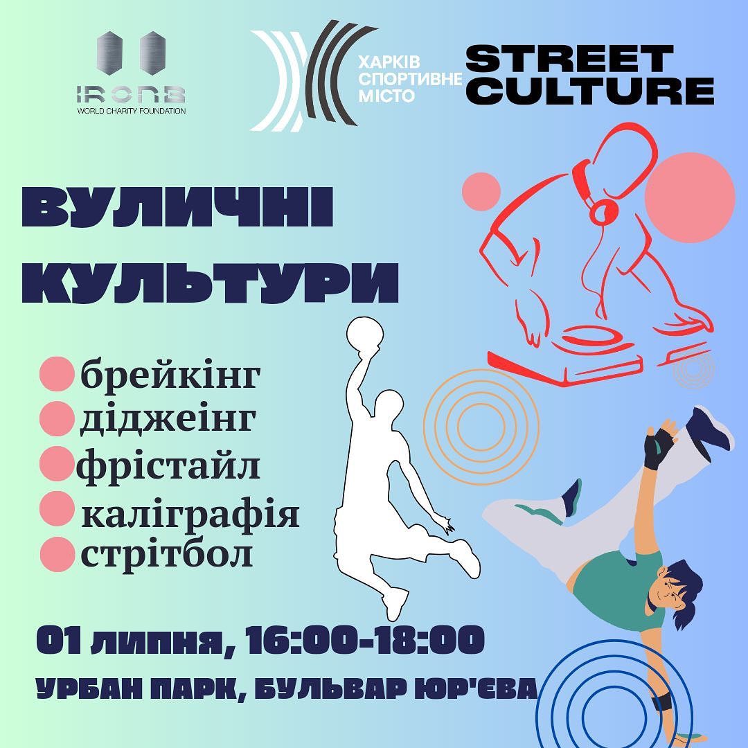 Запрошуємо всіх бажаючих харківʼян познайомитися поближче з вуличними культурами і взяти участь у майстер-класі з брейкінгу, діджеїнгу та каліграфії. Також на учасників чекає опанування навичок тимбілдингу. Ви знайдете нових друзів і відчуєте себе частиною крутої команди. Буде весело і цікаво.
